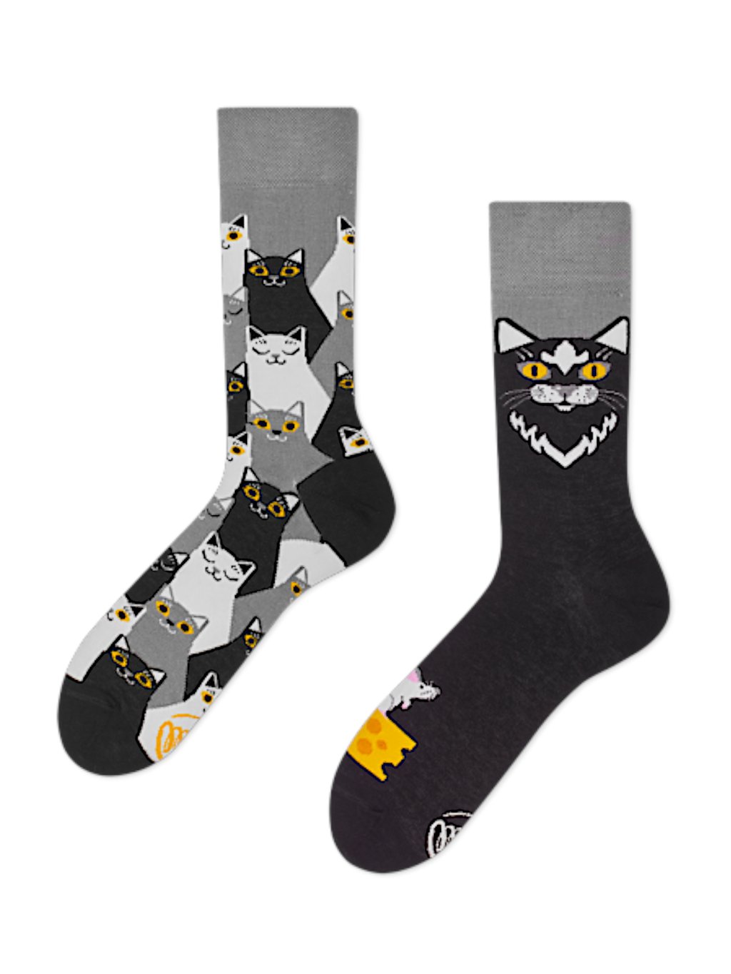 Veselé ponožky Many Mornings Čierne mačky vás zaujmú svojou tajomnou atmosférou. Vyrobené sú prevažne z bavlny, ktorá je hebká na dotyk a vďaka schopnosti absorbovať vlhkosť udržuje vaše chodidlá svieže.